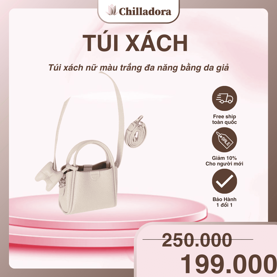 Túi xách nữ màu trắng đa năng bằng da giả.